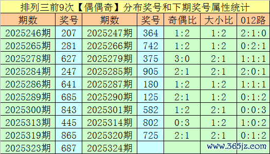 上期总结:陈设三第2025323期开出奖号687,类型为:偶偶奇、021路和大大大。